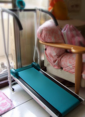 早上看空英時走了20幾分鐘,全身就都是汗,中午吃飯過後,又走了20分大概是2km,整個把手和地上全都是汗水,看著身上的一顆顆汗珠,真的好高興喔!